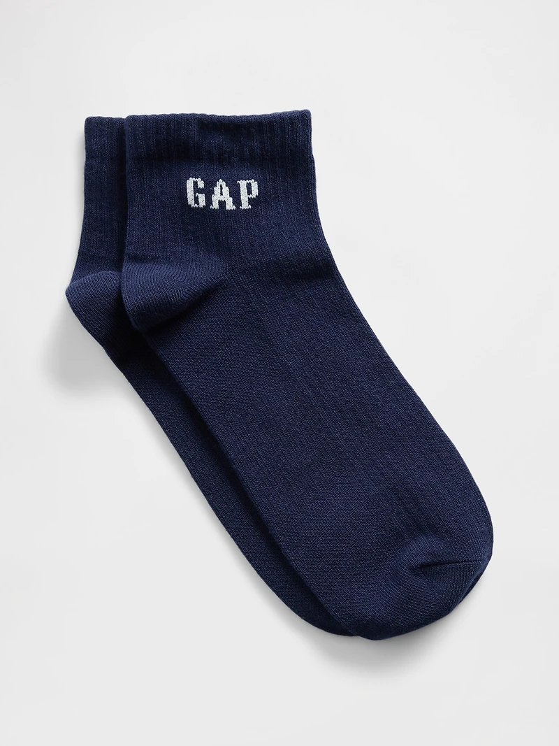 Soft, stretch ribbed quarter crew socks. Ribbed top with Gap logo. Reinforced toe and heel. This product was made in a factory that invests in gender equality and women’s empowerment. Through RISE (Reimagining Industry to Support Equality) and Gap Inc. ’s program P. A. C. E. (Personal Advancement & Career Enhancement), we support people who make our clothes to build the skills, knowledge, confidence, and resilience needed to advance in work and life. .Learn more.here.
