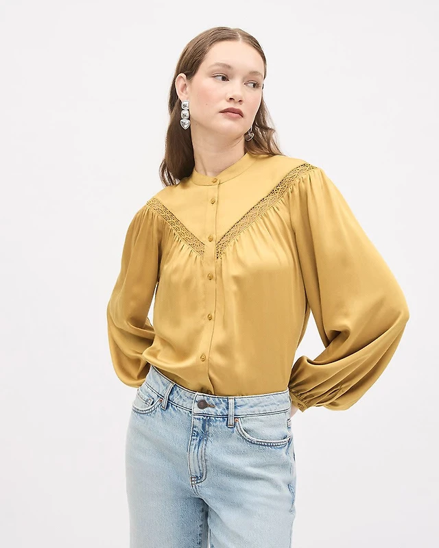 Satin Long-Sleeve Buttoned-Down Blouse