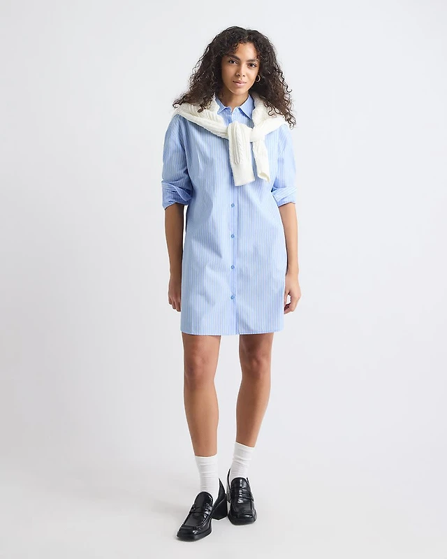 Long-Sleeve Buttoned-Down Poplin Dress with Shirt Collar