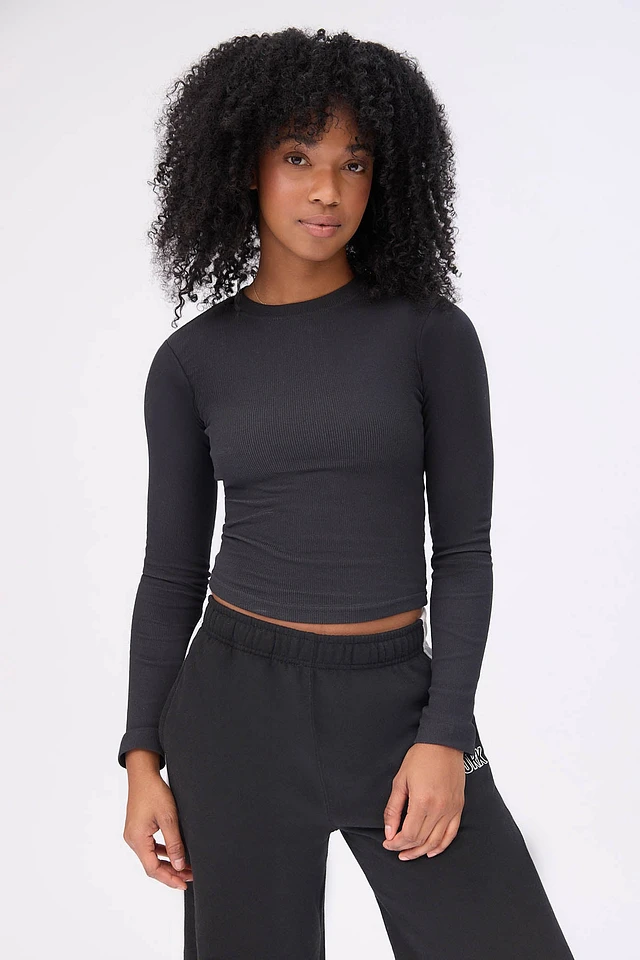 Long-Sleeve Crew-Neck Fitted Ribbed Tee