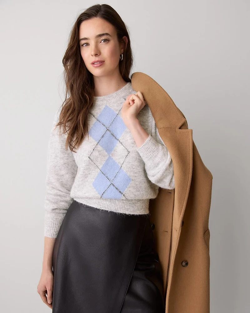 Long-Sleeve Crew-Neck Hairy-Knit Argyle Sweater in Ottawa, ON