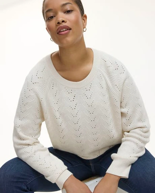 Long-Sleeve Crew-Neck Sweater with Pointelle Stitches