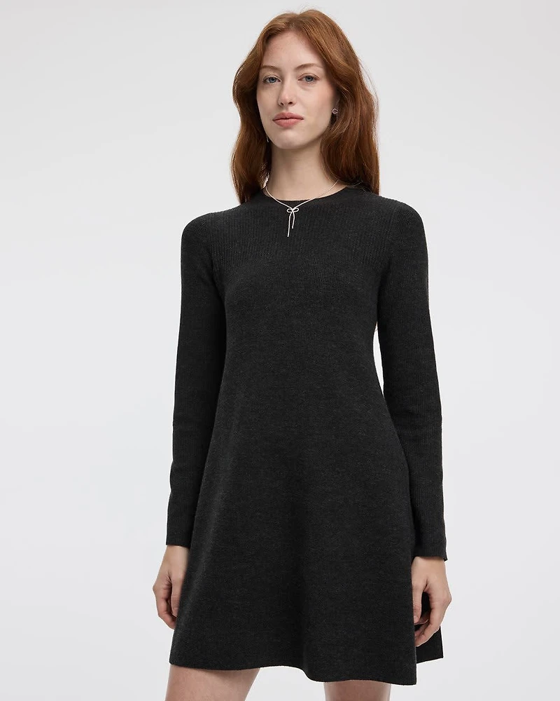Long-Sleeve Crew-Neck Swing Sweater Dress