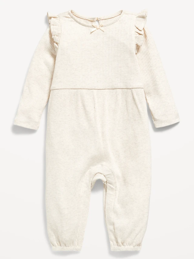 Long-Sleeve Ruffle-Trim Ribbed Jumpsuit for Baby