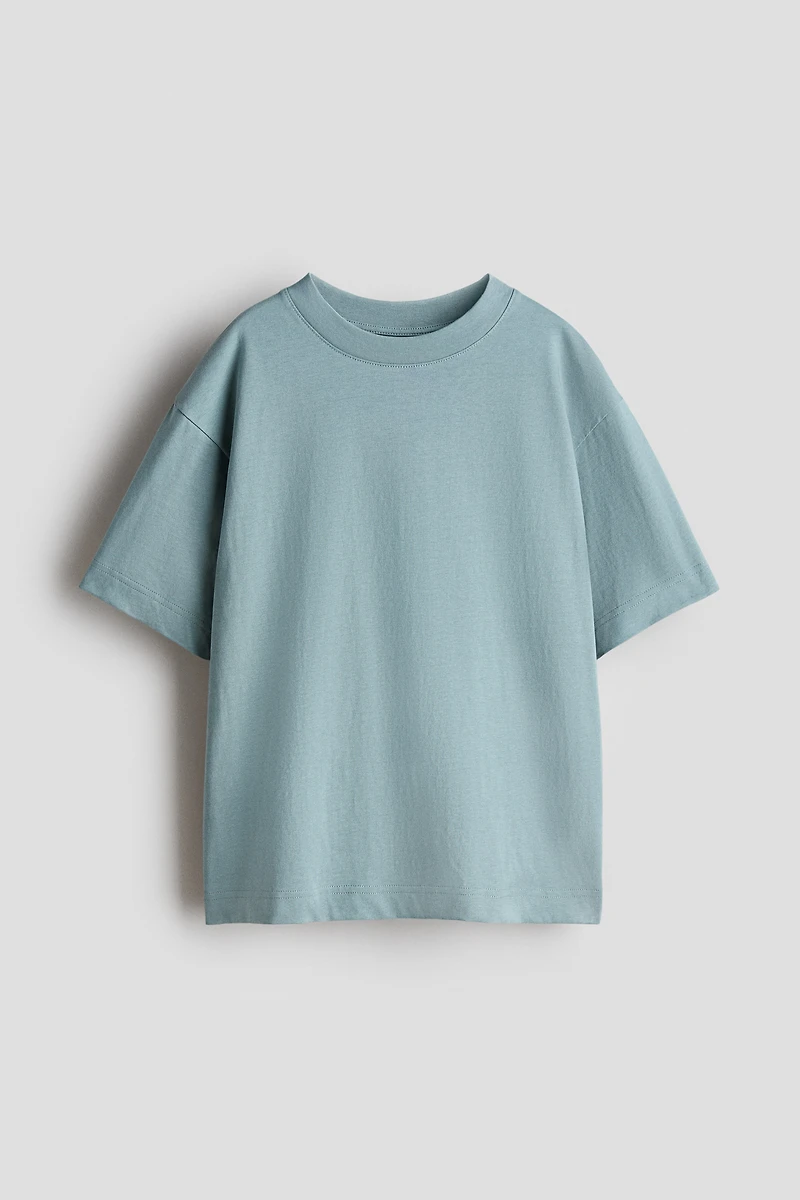 Loose-fit T-shirt in soft cotton jersey. Ribbed neck and dropped shoulders.