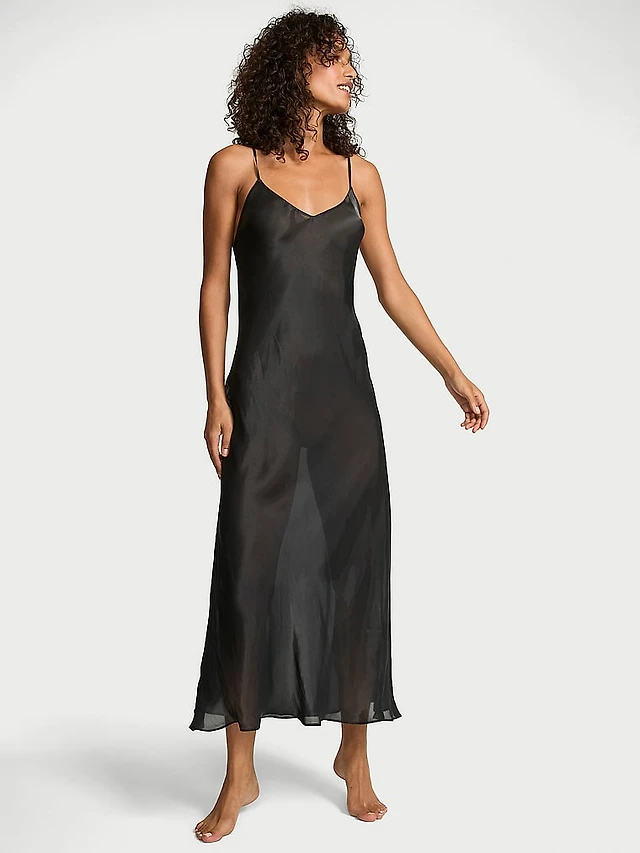 Luxe Sheer Satin Long Slip Dress