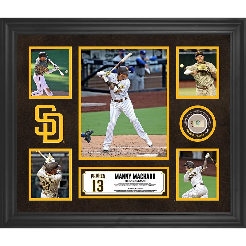 Take your collection of San Diego Padres memorabilia to the next level with this Manny Machado Framed 5-Photo Collage with Piece of Game-Used Baseball. Whether displayed in your home or office, it's the perfect way to highlight your passion for the San Diego Padres for years to come.