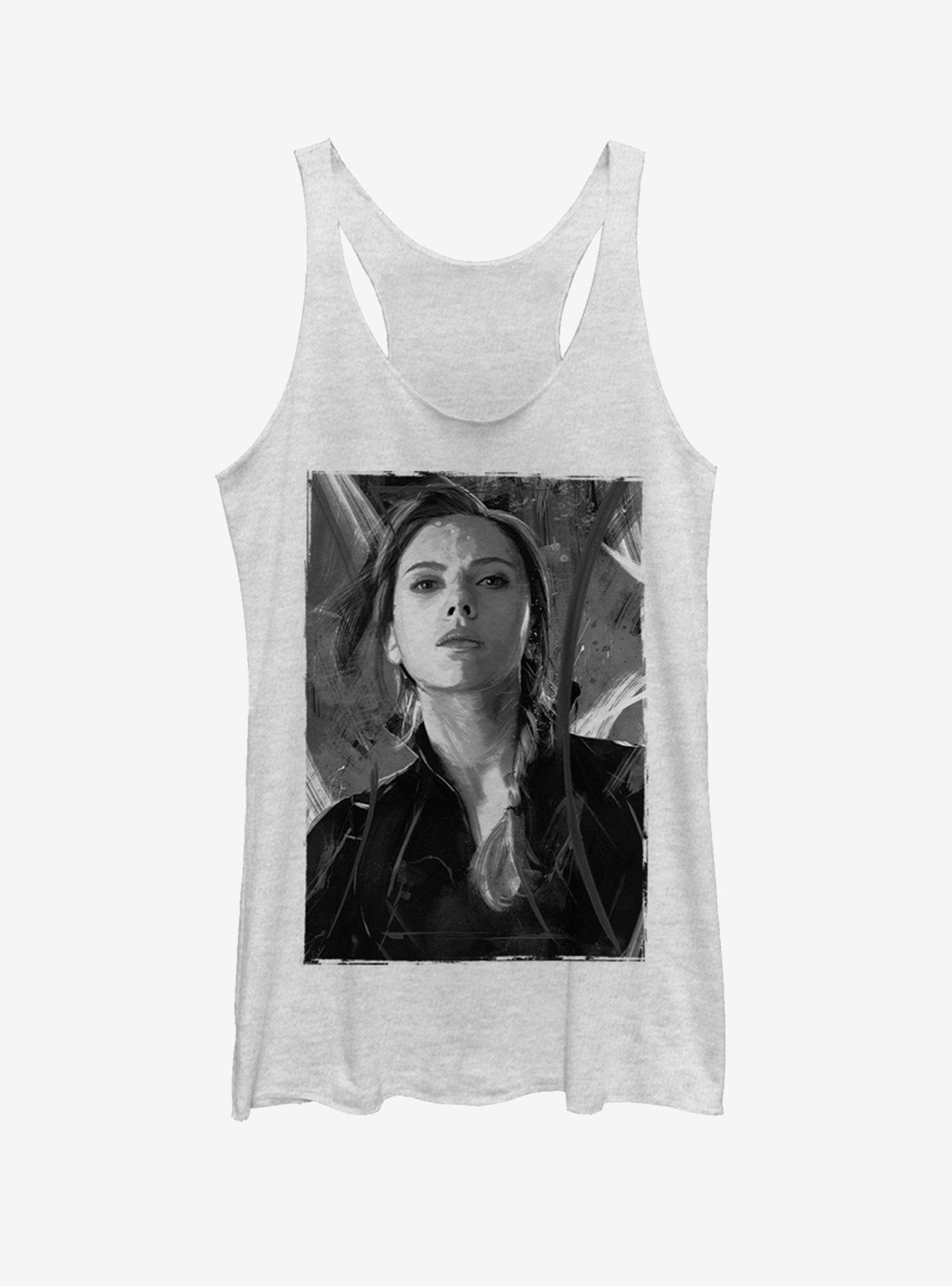 Whatever it takes! This heathered white tank from Avengers: Endgame features Natasha Romanoff, AKA Black Widow, screened on the front.
