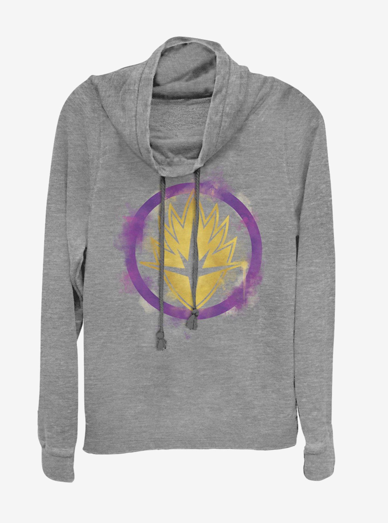 Marvel Avengers: Endgame Guardians Spray Logo Cowlneck Long-Sleeve Girls Grey Heathered Top