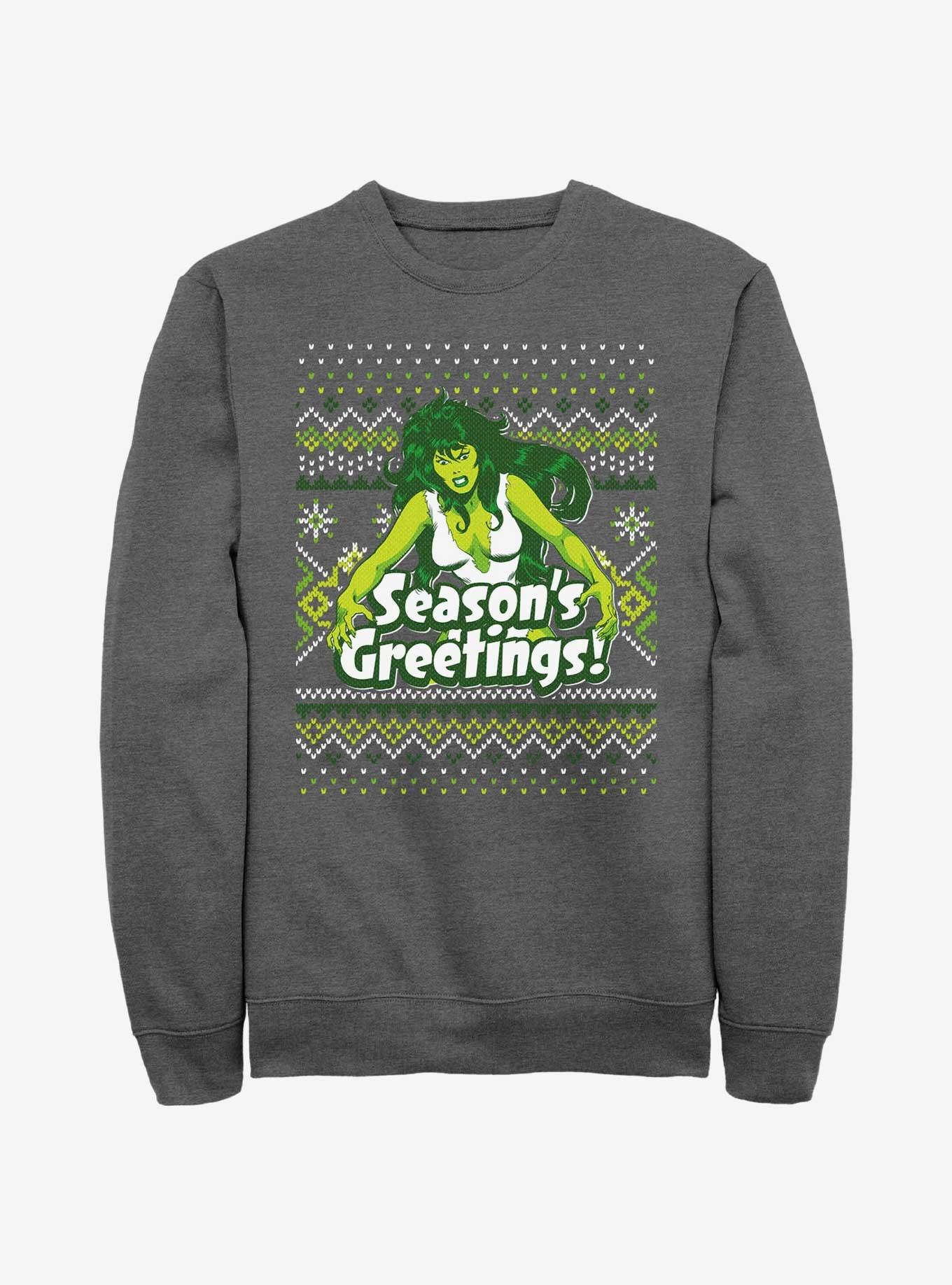 Marvel Hulk She-Hulk Season's Greetings Ugly Christmas Sweatshirt