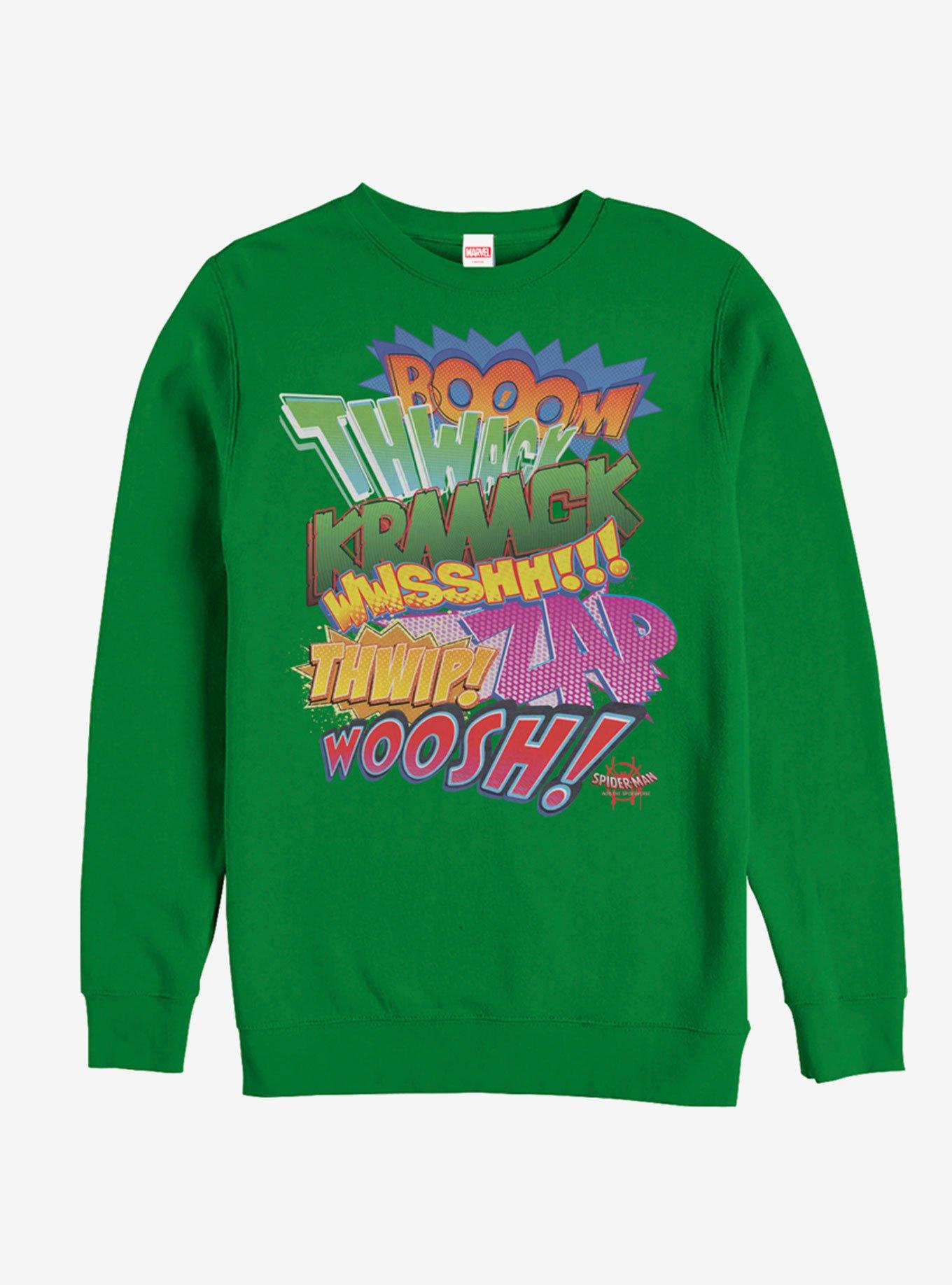 Marvel Spider-Man: Into The Spider-Verse Sound Effects Kelly Green Sweatshirt