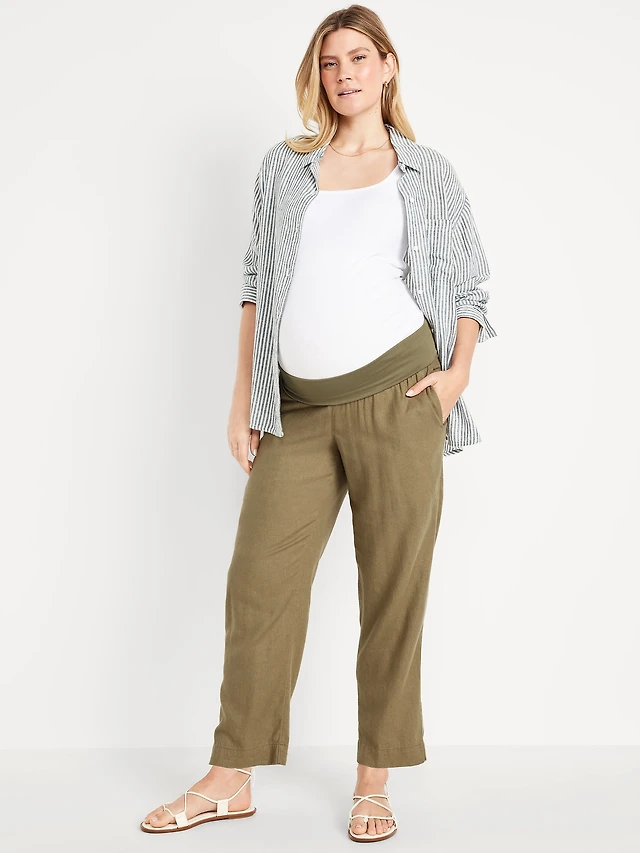 Maternity Rollover Waist Barrel Leg Ankle Pants