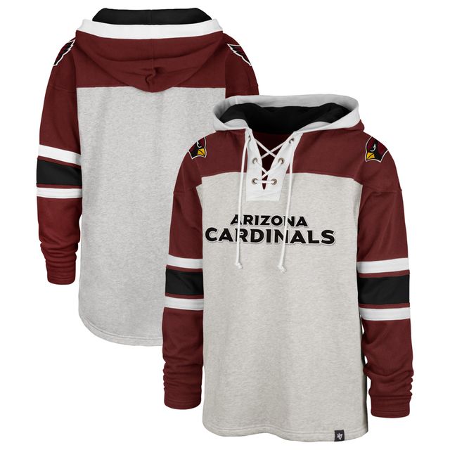 Men's '47 Gray/Cardinal Arizona Cardinals Gridiron Lace-Up - Pullover Hoodie