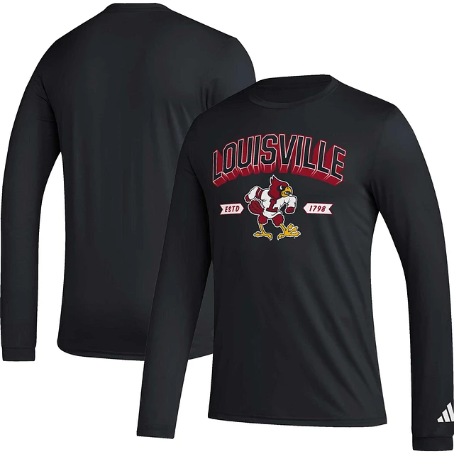 Men's adidas Black Louisville Cardinals Mighty Mascot Pregame Long Sleeve T-Shirt