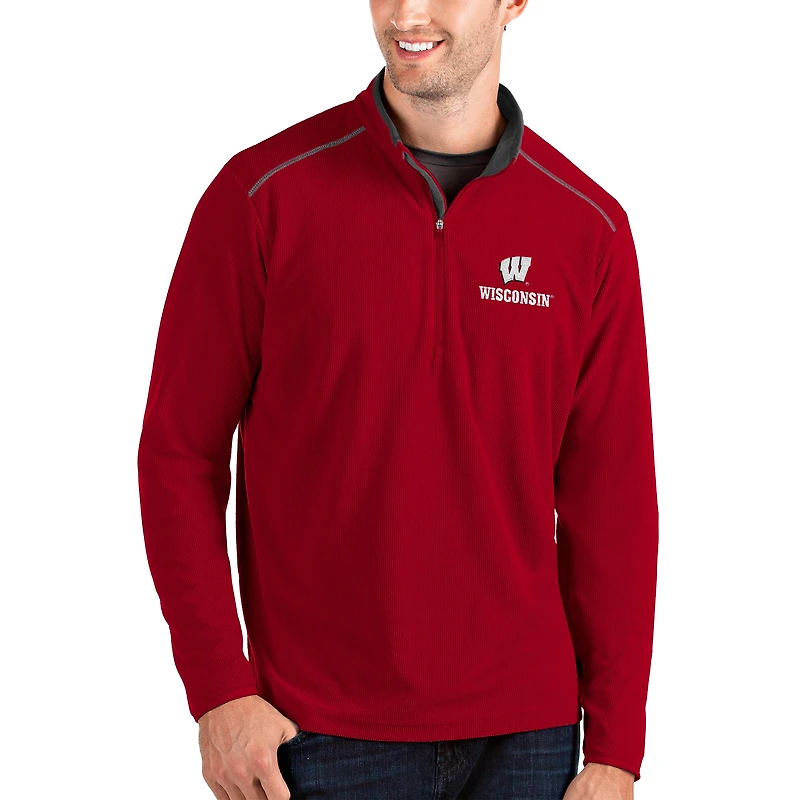 Men's Antigua Red/Charcoal Wisconsin Badgers Glacier Quarter-Zip Pullover Jacket in Ottawa, ON
