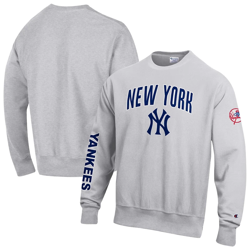 Men's Champion Gray New York Yankees Reverse Weave Chenille Sweatshirt