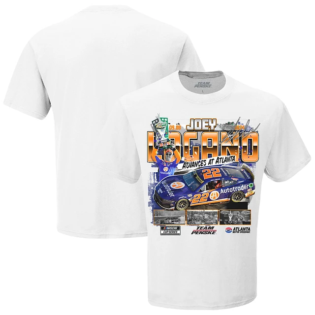 Men's Checkered Flag Sports White Joey Logano 2024 Quaker State 400 Race Winner T-Shirt