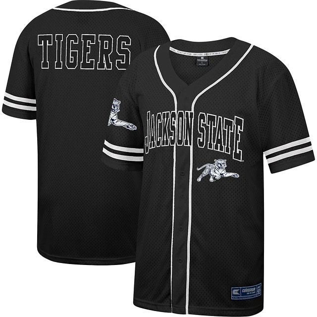 Men's Colosseum Black Jackson State Tigers Free Spirited Mesh Button-Up Baseball Jersey