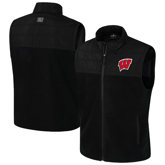 Men's Colosseum Black Wisconsin Badgers Block The Sun Full-Zip Vest