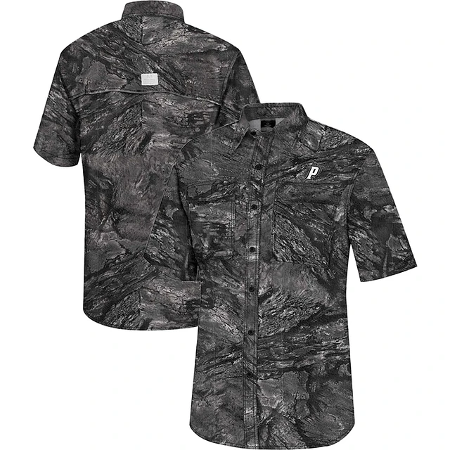 Men's Colosseum Charcoal Providence Friars Realtree Aspect Charter Full-Button Fishing Shirt