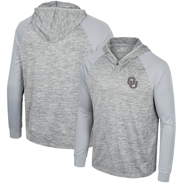 Men's Colosseum Gray Oklahoma Sooners Cybernetic Raglan Quarter-Zip Hooded Top