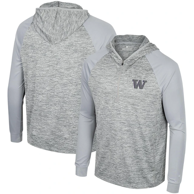Men's Colosseum Gray Washington Huskies Cybernetic Raglan Quarter-Zip Hooded Top