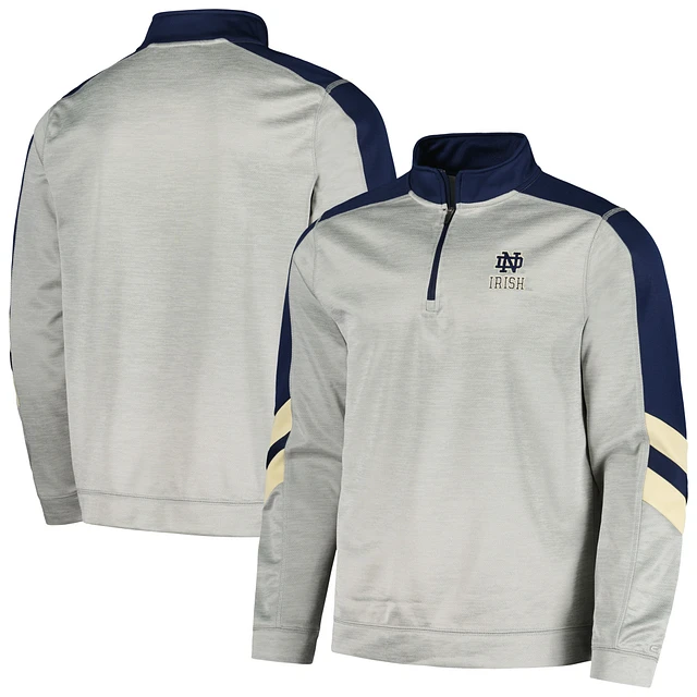 Men's Colosseum Gray/Navy Notre Dame Fighting Irish Bushwood Fleece Quarter-Zip Jacket