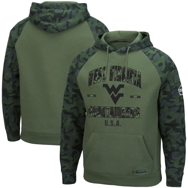 Men's Colosseum Olive/Camo West Virginia Mountaineers OHT Military Appreciation Raglan Pullover Hoodie
