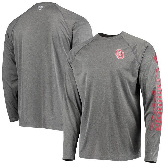 Men's Columbia Charcoal Oklahoma Sooners Terminal Tackle Omni-Shade Raglan Long Sleeve T-Shirt