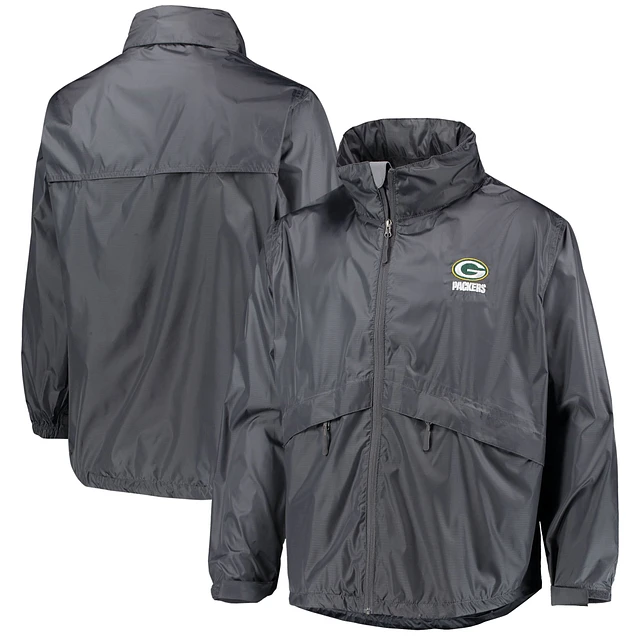 Men's Dunbrooke Graphite Green Bay Packers Circle Sportsman Waterproof Packable Lightweight Full-Zip Jacket