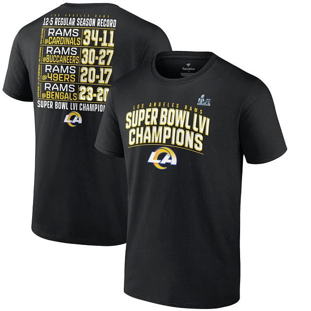 Men's Fanatics Black Los Angeles Rams Super Bowl LVI Champions Big & Tall Schedule T-Shirt