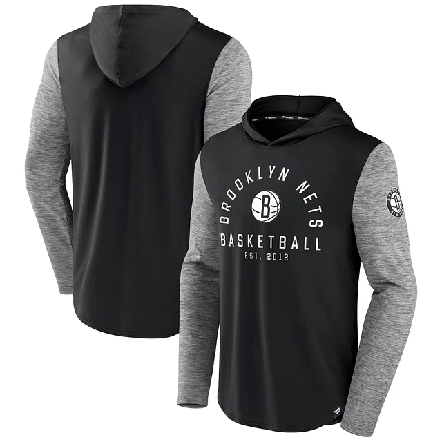Men's Fanatics Black/Heathered Charcoal Brooklyn Nets Deep Rotation Performance Pullover Hoodie