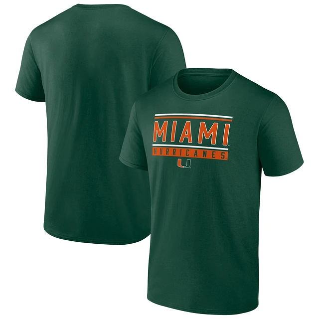 Men's Fanatics Green Miami Hurricanes Fundamentals Stripe and Block T-Shirt