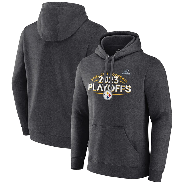 Men's Fanatics Heather Charcoal Pittsburgh Steelers 2023 NFL Playoffs Fleece Pullover Hoodie