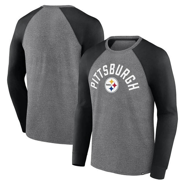Men's Fanatics Heather Navy Pittsburgh Steelers Arc Away Tri-Blend Long Sleeve T-Shirt