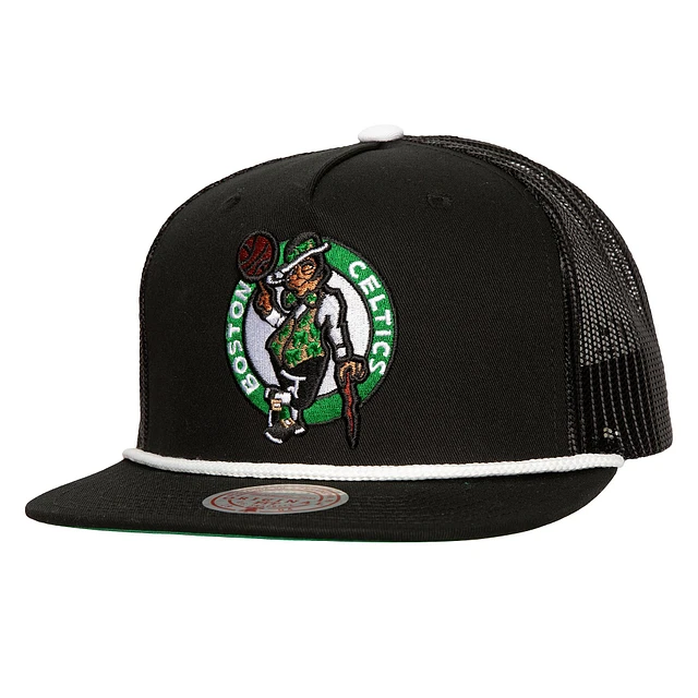 Men's Mitchell & Ness Black Boston Celtics Roper Meshback Trucker Snapback Hat