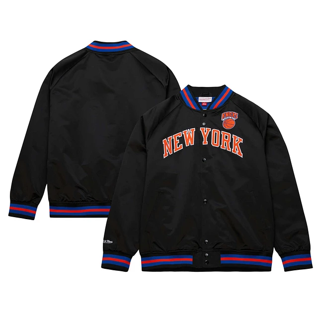Men's Mitchell & Ness Black New York Knicks Hardwood Classics Throwback Wordmark Raglan Full-Snap Jacket