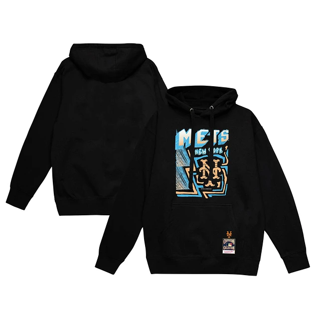 Men's Mitchell & Ness Black New York Mets Sidewalk Sketch Pullover Hoodie