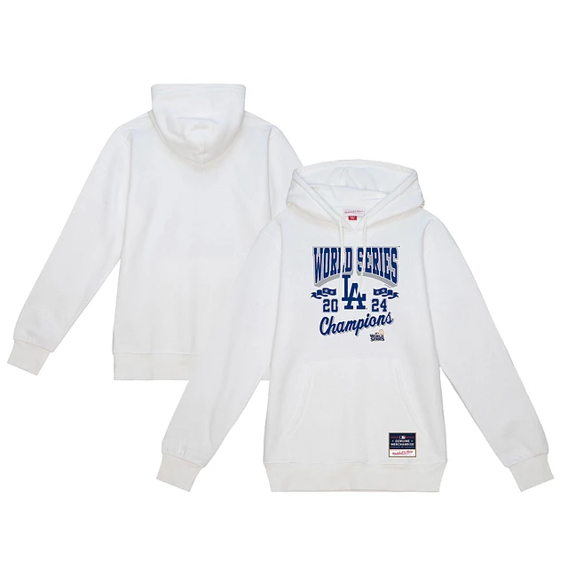 Men's Mitchell & Ness White Los Angeles Dodgers 2024 World Series Champions Arch Logo Fleece Pullover Hoodie