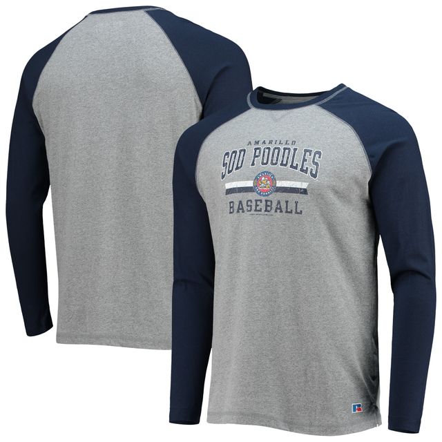 Men's Navy/Heathered Gray Amarillo Sod Poodles Long Sleeve Baseball T-Shirt