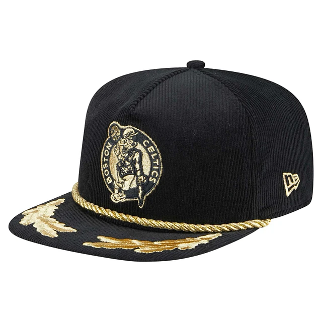 Men's New Era Black Boston Celtics Corduroy Gold Leaf Golfer Snapback Hat