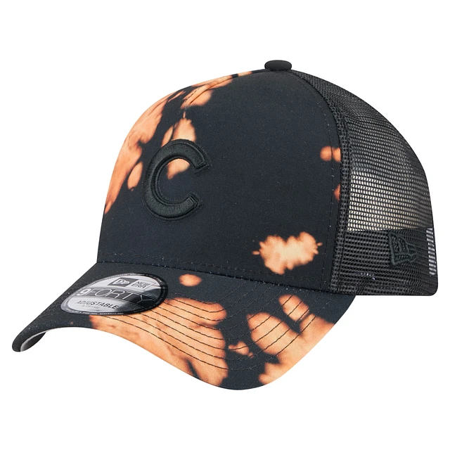 Men's New Era Black Chicago Cubs Bleached A-Frame 9FORTY Adjustable Hat