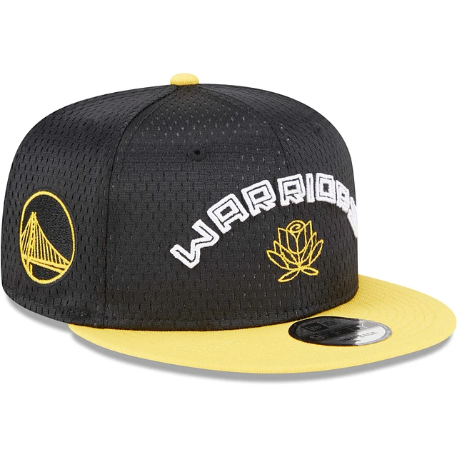 Men's New Era Black/Gold Golden State Warriors Mesh 9FIFTY Snapback Hat