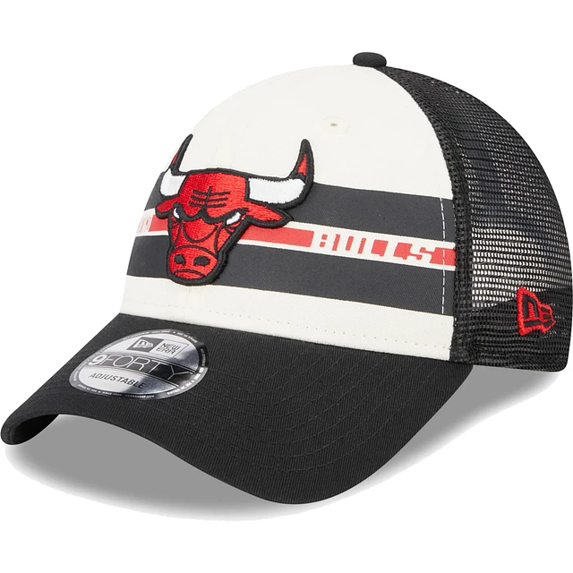 Men's New Era Chicago Bulls Black Stripes 9FORTY Trucker Snapback Hat