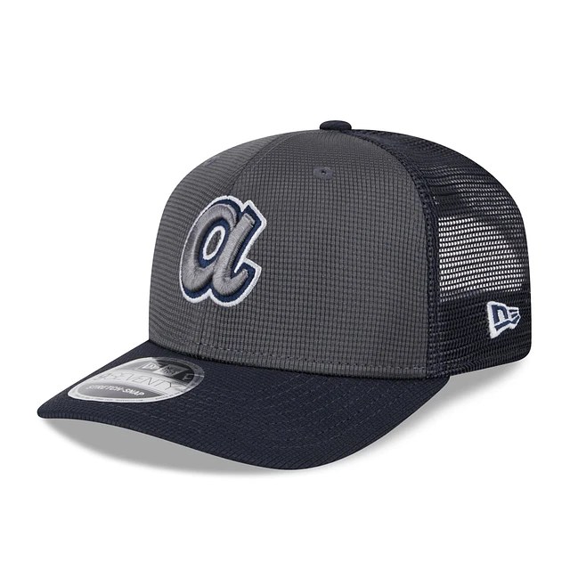 Men's New Era /Navy Atlanta Braves 2025 Batting Practice 9SEVENTY Stretch-Snap Trucker Hat