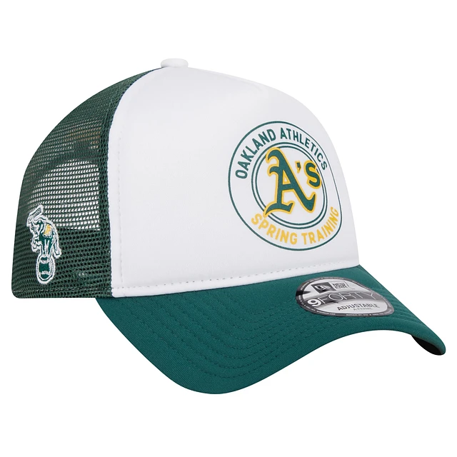 Men's New Era White/Green Oakland Athletics Spring Training Circle Foam A-Frame 9FORTY Trucker Adjustable Hat