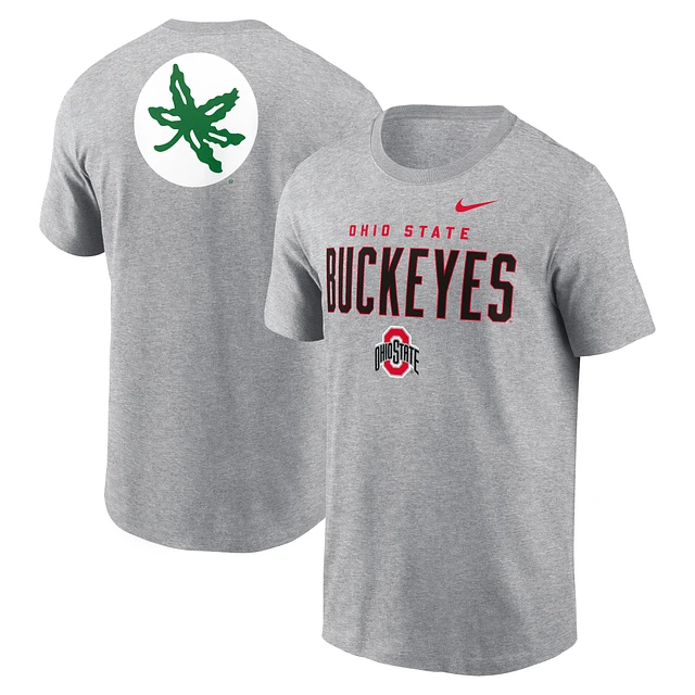 Men's Nike Heather Gray Ohio State Buckeyes Campus 2-Hit Primary Mascot T-Shirt