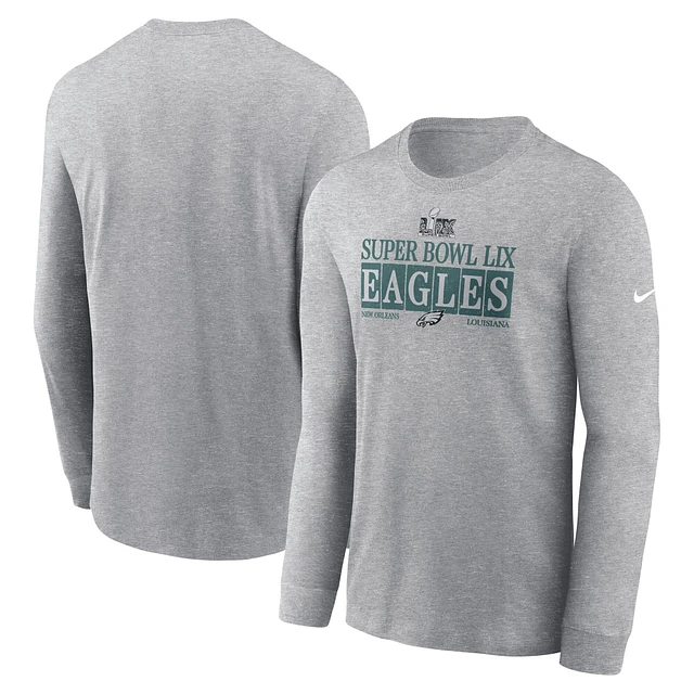 Men's Nike Heather Gray Philadelphia Eagles Super Bowl LIX NOLA Inspired Long Sleeve T-Shirt