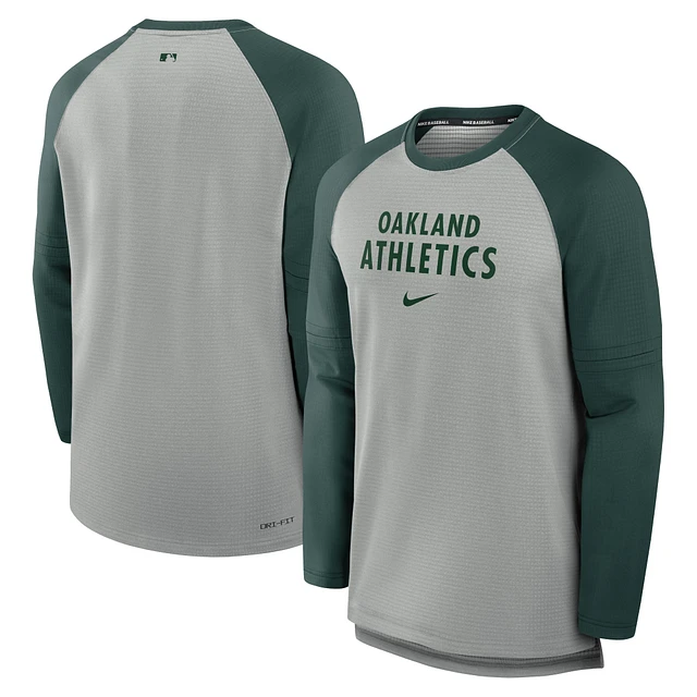 Men's Nike Heather Gray/Green Oakland Athletics Authentic Collection Game Time Raglan Performance Long Sleeve T-Shirt