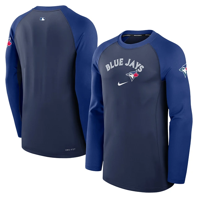 Men's Nike Navy/Royal Toronto Blue Jays Authentic Collection Game Time Raglan Performance Long Sleeve T-Shirt